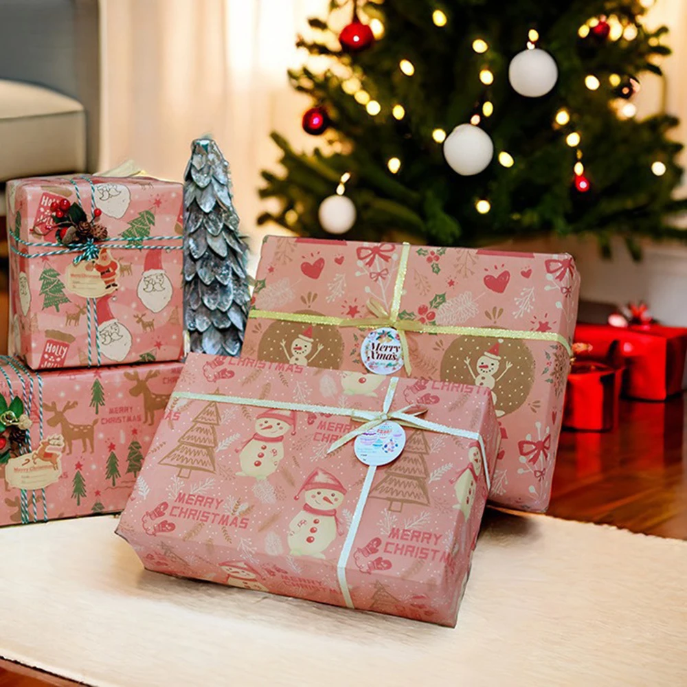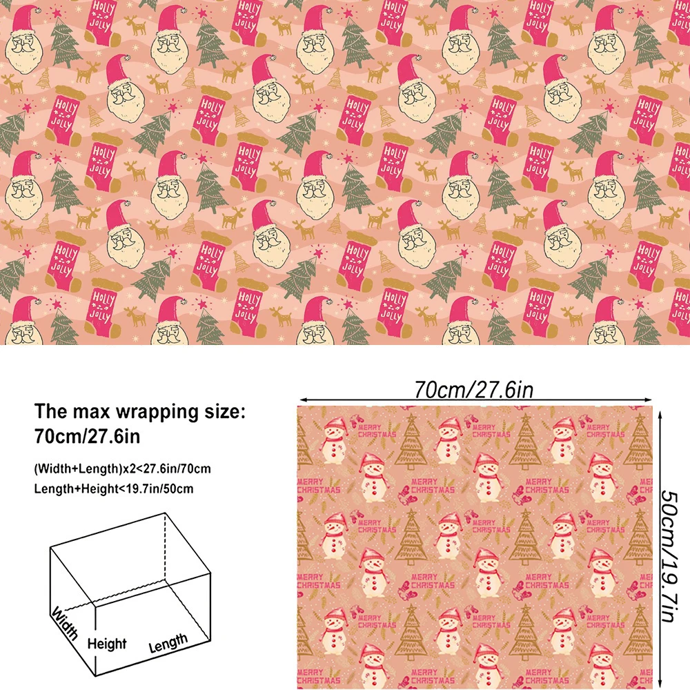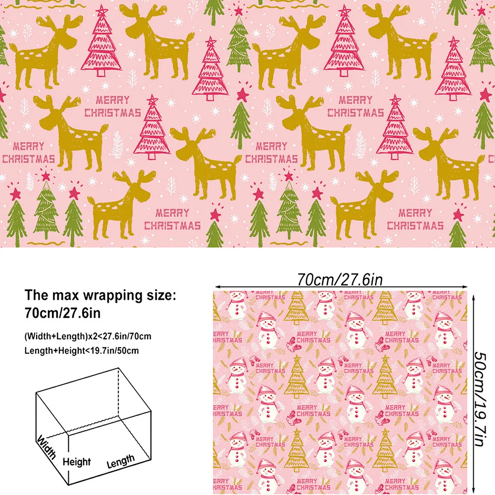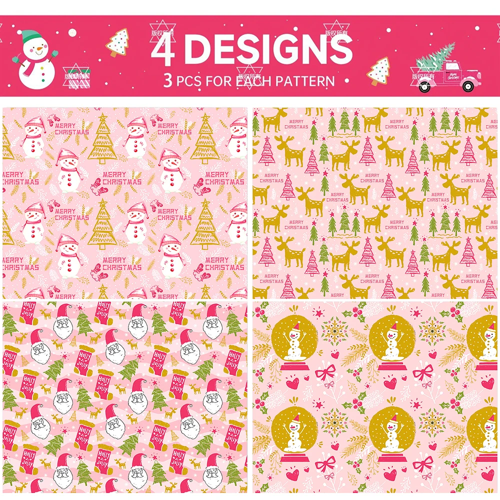 12PCS Pink Christmas Wrapping Paper